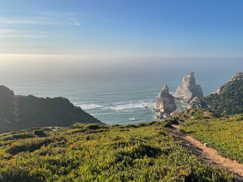 So sah es unmittelbar vor dem Abstieg zum Praia da Ursa aus: Weit hinten auf dem Meer ist das Nebelband zu erkennen.
