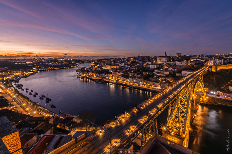 Die Ponte Dom Luis I in der Abenddämmerung. EOS R5 + RF16-28/2.8 bei 18mm, 5s, f16, ISO200
